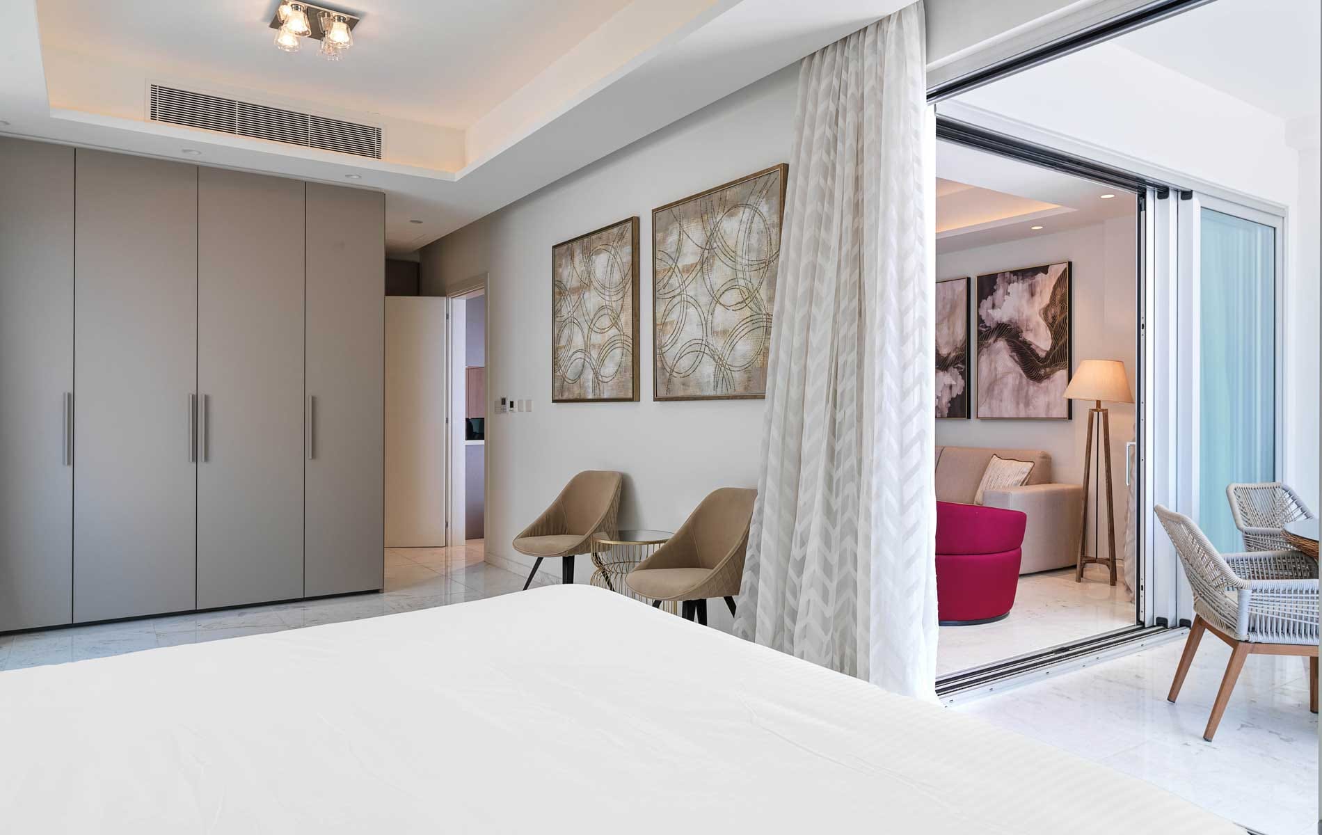 A contemporary deluxe two-bedroom residence with spacious and light earthy tones are exquisitely styled to evoke both warm and elegance. Gaze out of your expansive windows at the dazzling views, step out for a walk at the beach, set sail from the marina at your doorstep, or just enjoy amazing award-winning facilities all-day long!