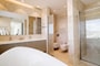 If you are looking for the best Cyprus has to offer, then look no further. This luxurious villa on the top of the Tower, is a two-storey penthouse on the 11th and 12th floors (level 13 and 14). The twelfth and highest floor of the Tower boosts the most magnificent views in Limassol, overlooking the private marina, gardens and simply the whole Limassol Bay with unobstructed and unrivalled views. The penthouse has every top-quality finish, with Crema Marfil stunning marble, top Italian brushed gold and wooden tailor-made kitchen, an office and four large bedrooms, all with ensuite. The kitchen has its own service entrance, a must for entertaining and there is a large, covered terrace on the 12th floor. The bedrooms are all situated on the 11th floor and there is a beautiful sweeping staircase connecting the two levels. All amenities have been considered in this state-of-the-art penthouse and every smart home option has been incorporated. There is a large walk in wardrobe in the master bedroom and breath-taking views can be enjoyed from the freestanding Villery & Boch bathtub.